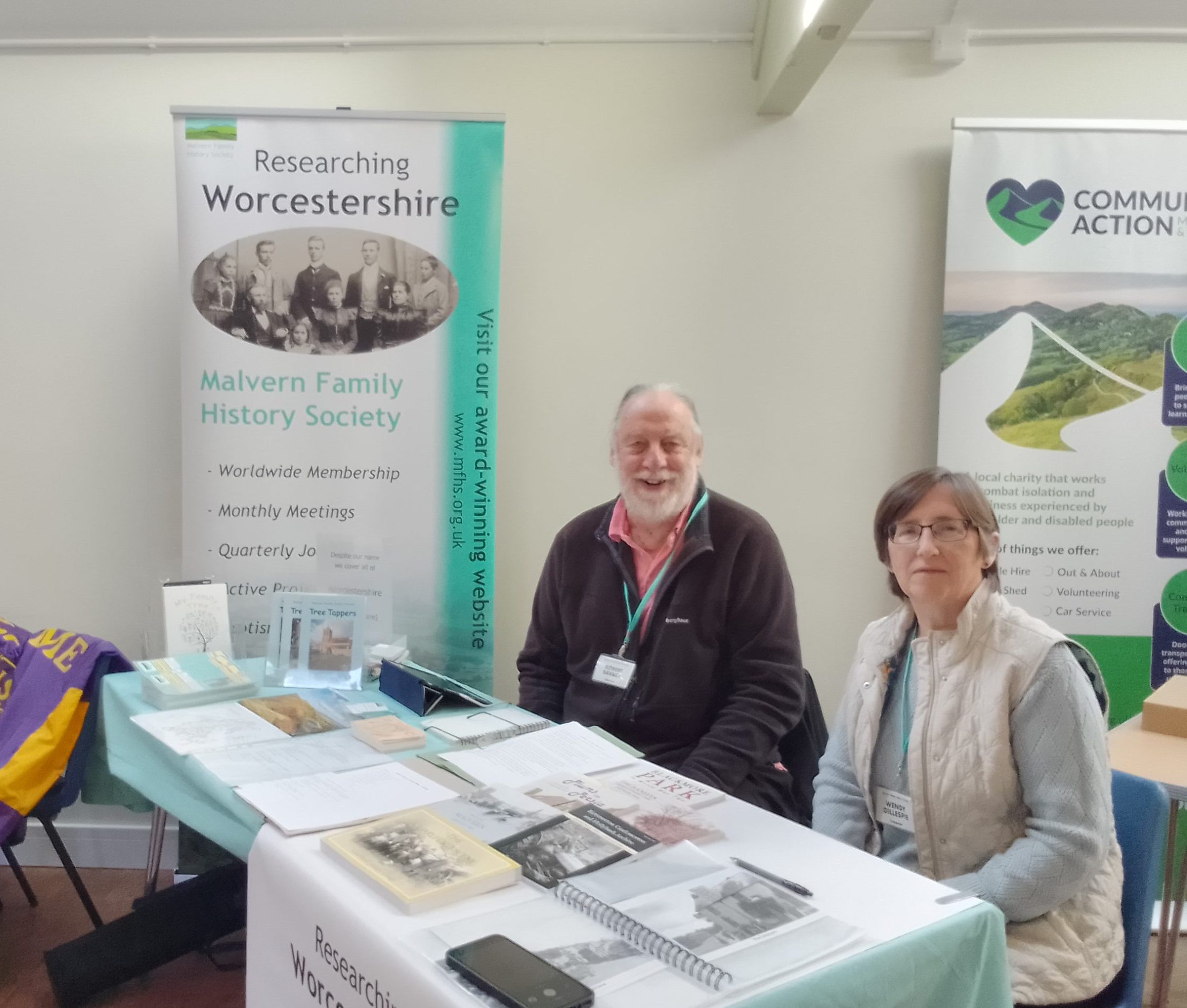 On Saturday 1 November Robert and I took a table at Guarlford Charity Day, organised to allow local charities and special interest groups to show off what they do and raise funds. Also joining us in Guarlford Village Hall were Guarlford Women’s Institute, Tools for Self Reliance, So XSighted Morris (visually impaired Morris dancing group based in Malvern), the Malvern Hills Foodbank, South Worcestershire Archaeological Group, Worcestershire Animal Rescue Shelter, Community Action Malvern & District and Worcester Lions Club. We had a pleasant day chatting to visitors about their family history and connections to the area and also managed to talk to the other groups about their work.