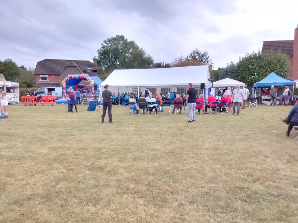 On Sunday 7 September Robert and I ran a publicity stand for MFHS at the annual Malvern Wells Fete on their village green. The green is in The Crescent, off St Wulstans Drive, on land that was once occupied by a war-time American military hospital and its successor, St Wulstans Hospital. The start of the fete was slightly delayed because of rain but once it stopped and the sun came out people began to appear, albeit in raincoats and wellies. Visitors enjoyed the usual fete entertainments including a tug of war, dog show, a brass band, a ukelele band and food and drink stalls.